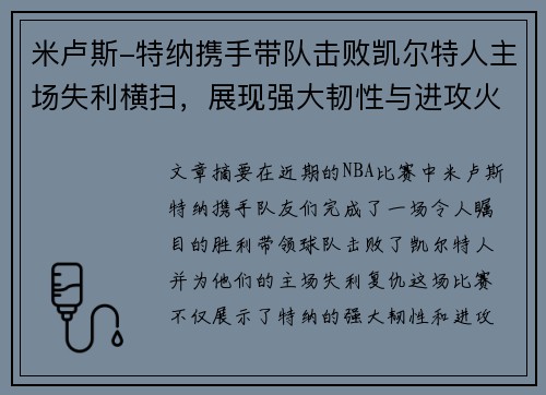 文章摘要:在近期的NBA比赛中,米卢斯-...