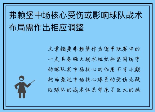 文章摘要:弗赖堡作为德甲联赛中的一支具备...
